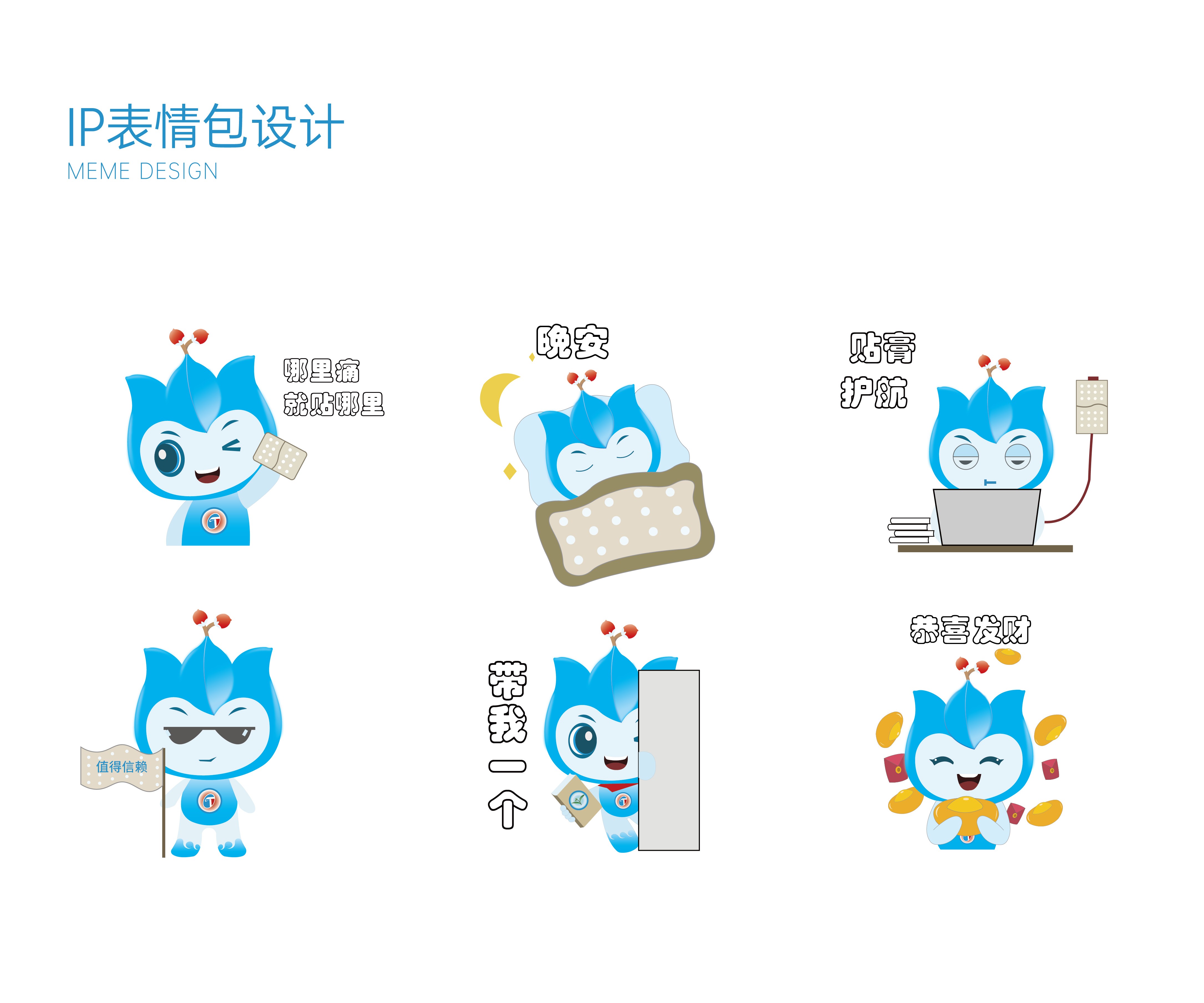 紅藍(lán)配色體系:整體配色沿用華潤(rùn)三九品牌標(biāo)志性的紅藍(lán)組合,確保IP與母品牌視覺(jué)基因的統(tǒng)一,同時(shí)紅色象征活力與溫?zé)幔{(lán)色代表專業(yè)與信賴,共同強(qiáng)化產(chǎn)品屬性認(rèn)知。